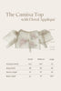 Crafted in a light and airy French Gauze fabric, this rendition of the Camisa Top is adorned with delicate floral appliqué for an ethereal and romantic take on a classic VR piece.